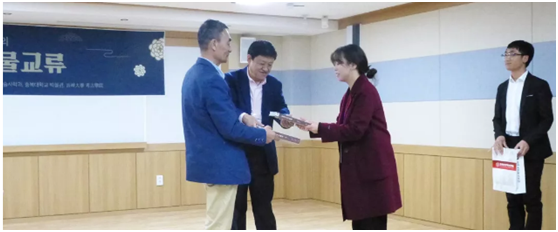 代表团向忠北大学校师生赠送了《边疆考古研究》、《Asian Archaeology》、《汉以前东北考古研究》、《东北考古学研究(一)》等书籍,忠北大学校代表团向肉视频