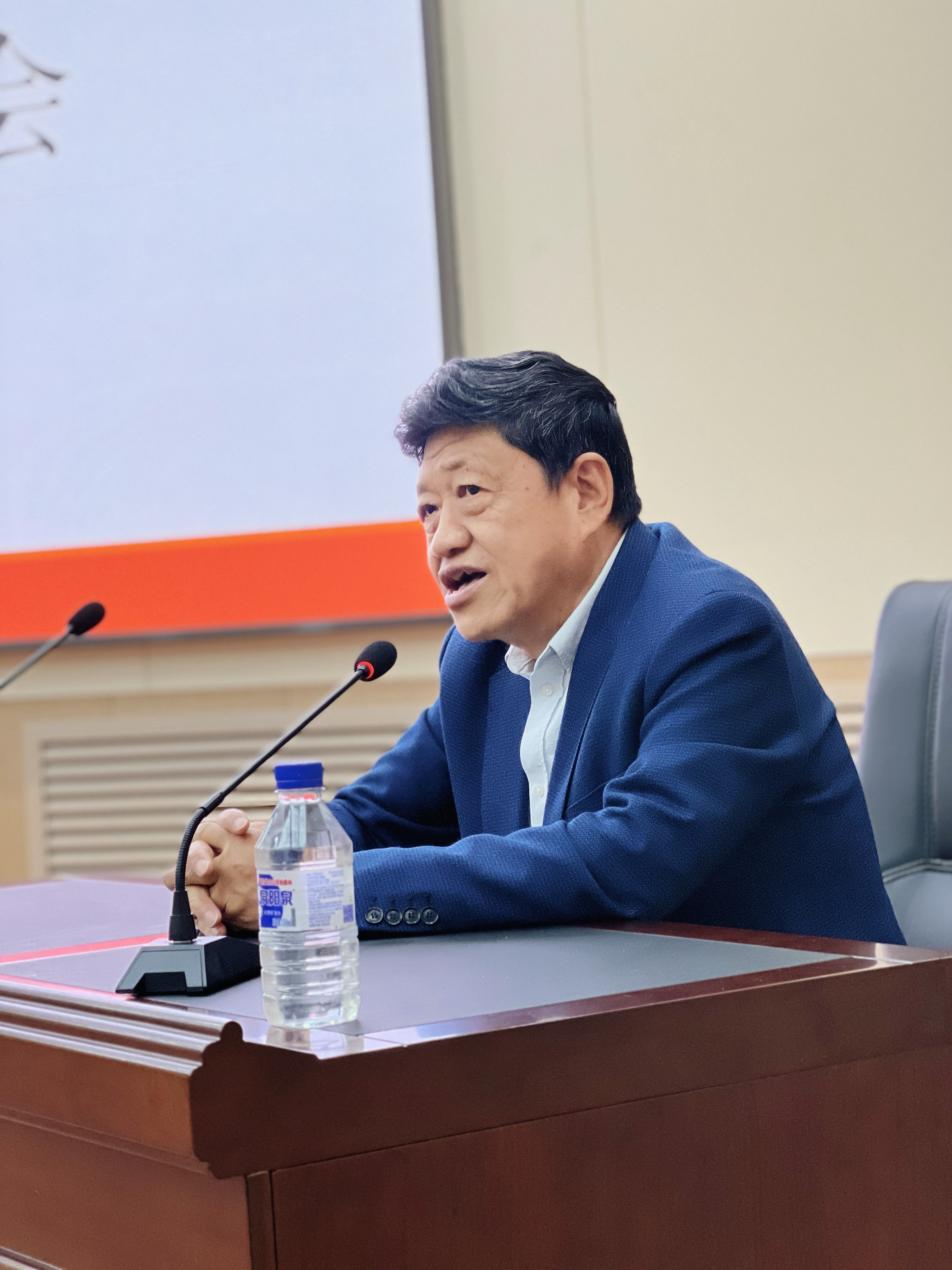 王巍以《贯彻党的教育方针、铸牢中华民族共同体意识》为题讲授党课。