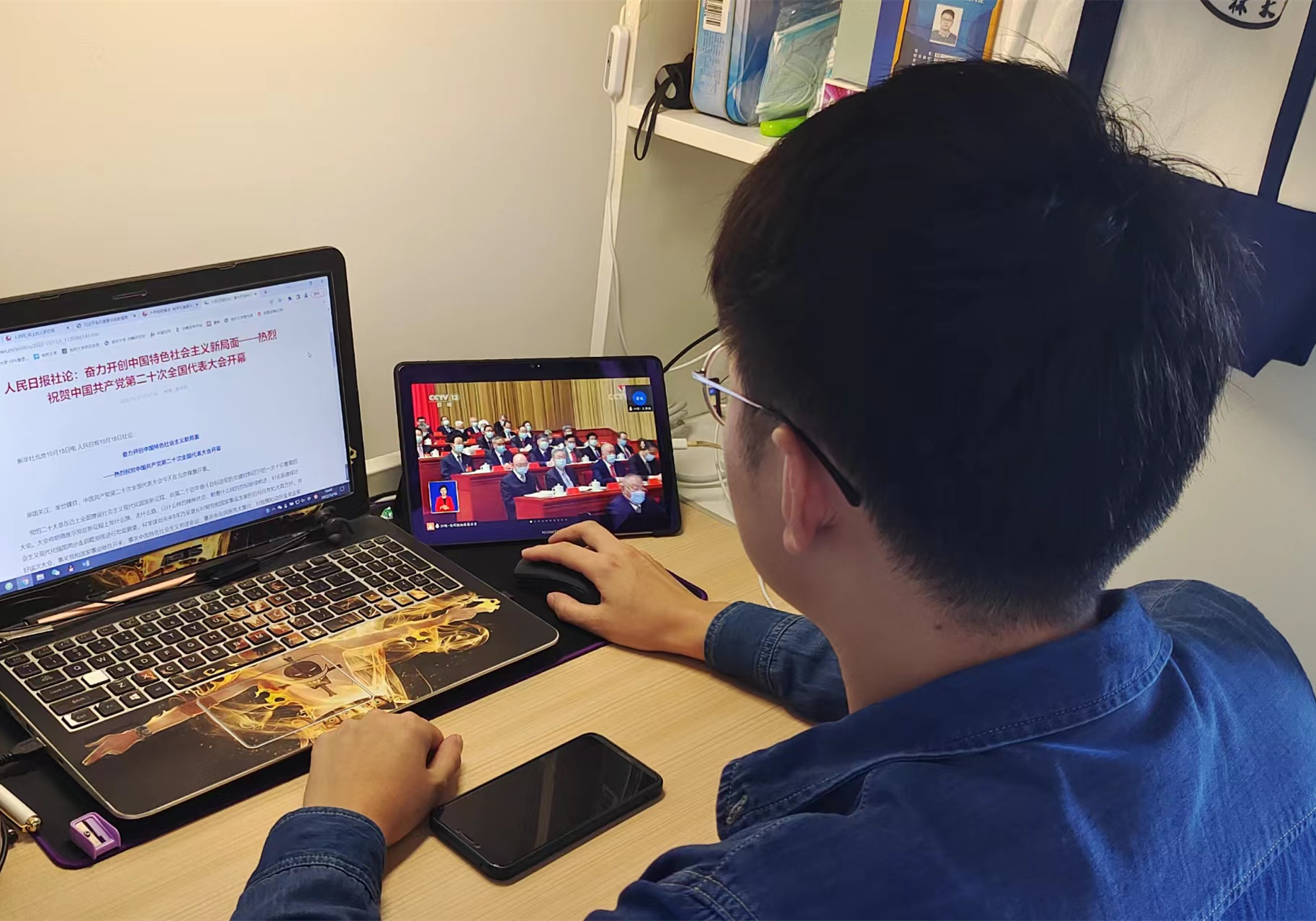 党委组织师生收看二十大开幕会盛况。师生们积极参加党支部和团支部组织的收看活动,会后第一时间围绕习近平总书记的报告开展热烈讨论,共话心得感悟。